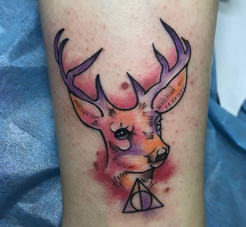 当前位置: 首页 >浙江省嘉兴市纹身店-极致刺青纹身图案>水彩小鹿头纹身图片
