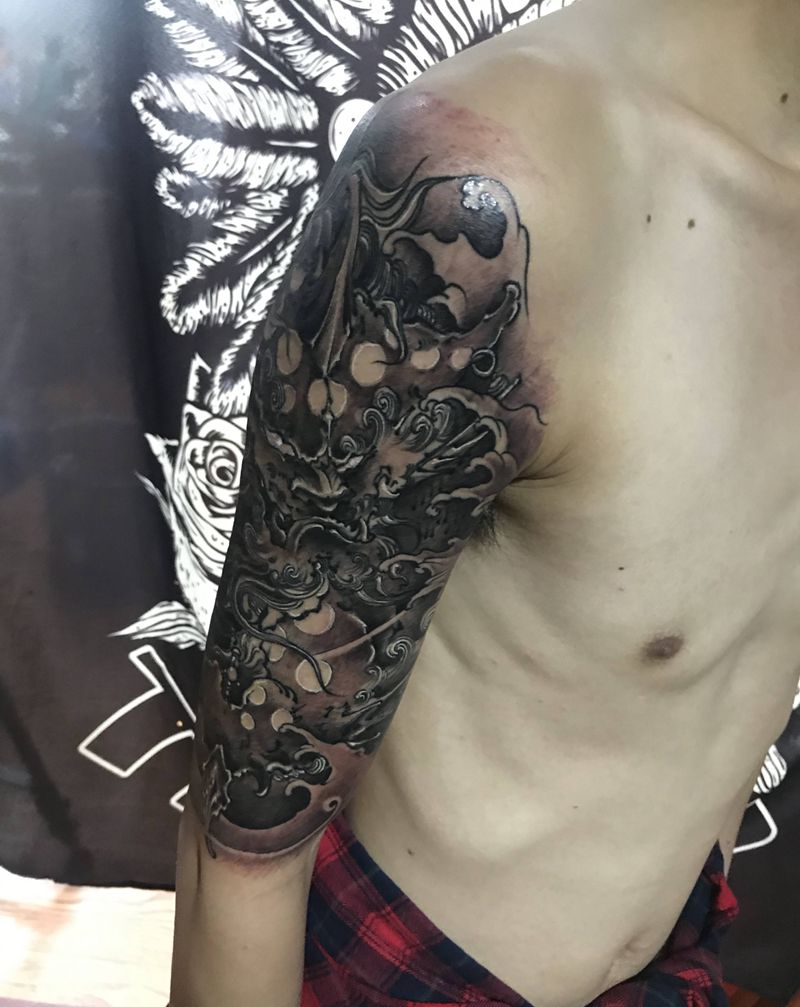 谛听纹身图片_手臂新传统纹身图案