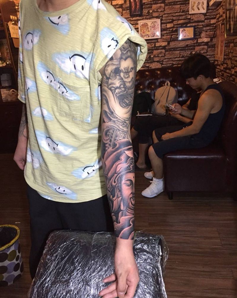 当前位置: 首页 >浙江省绍兴市纹身店-上虞魔鬼堂纹身工作室纹身图案>悟空与佛完成纹身图片