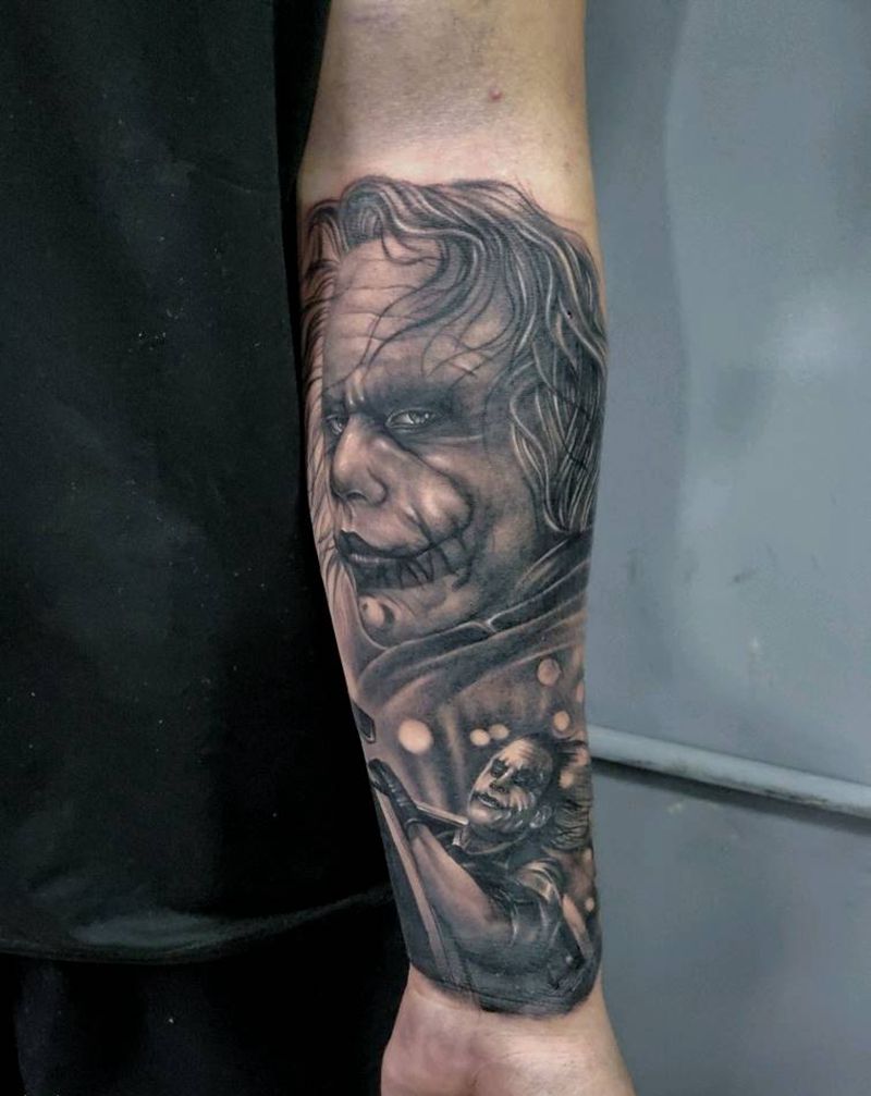 当前位置: 首页 >浙江省金华市纹身店- 纹身图案>小丑纹身图片_手臂欧美写实纹身图案