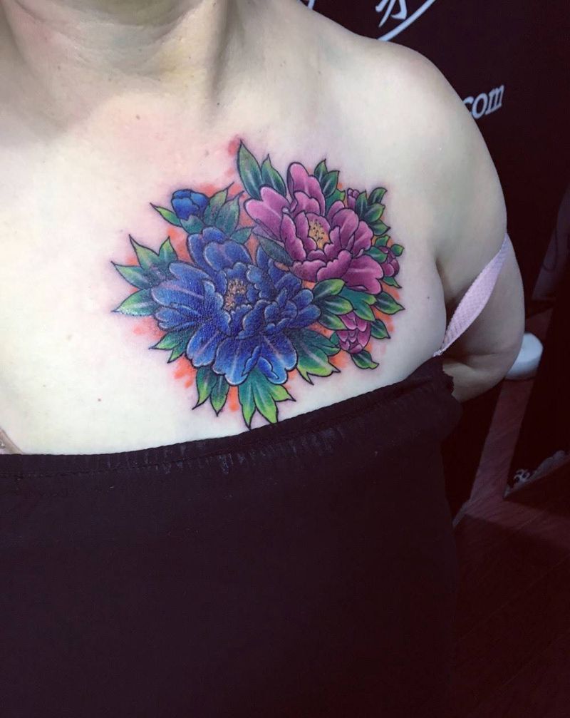 • 女性大花胸纹身_43张霸气漂亮的女性大花胸纹身图案作品