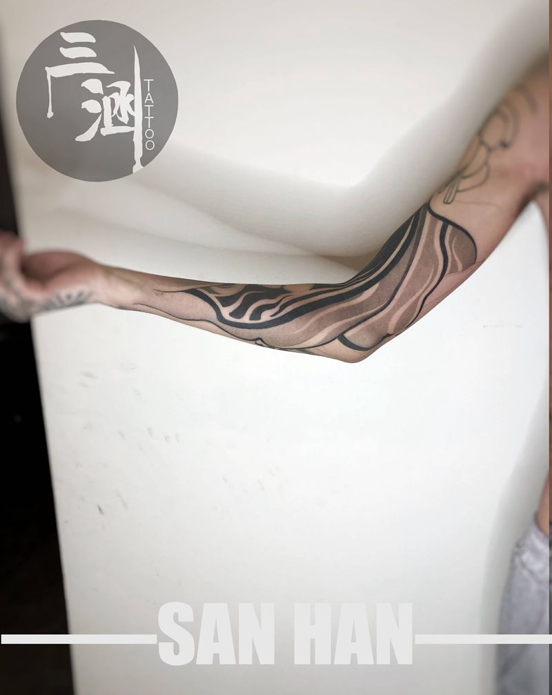 当前位置: 首页 >浙江省杭州市纹身店-三涵刺青社纹身图案>东方黑灰花臂纹身图片_手臂老传统纹身图案