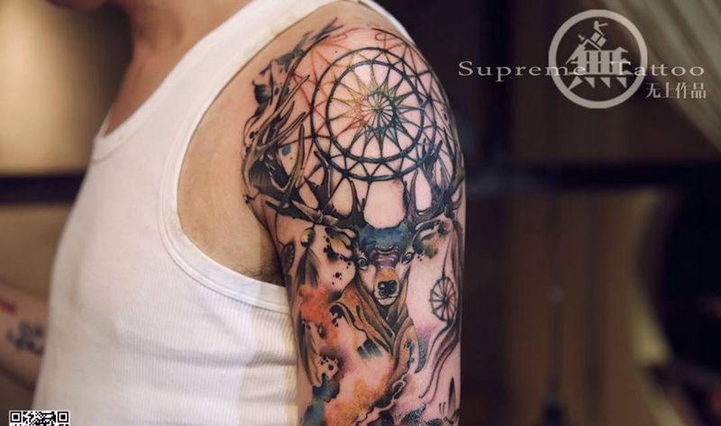 捕梦网纹身图片_原创动物欧美成品手臂水彩纹身图案