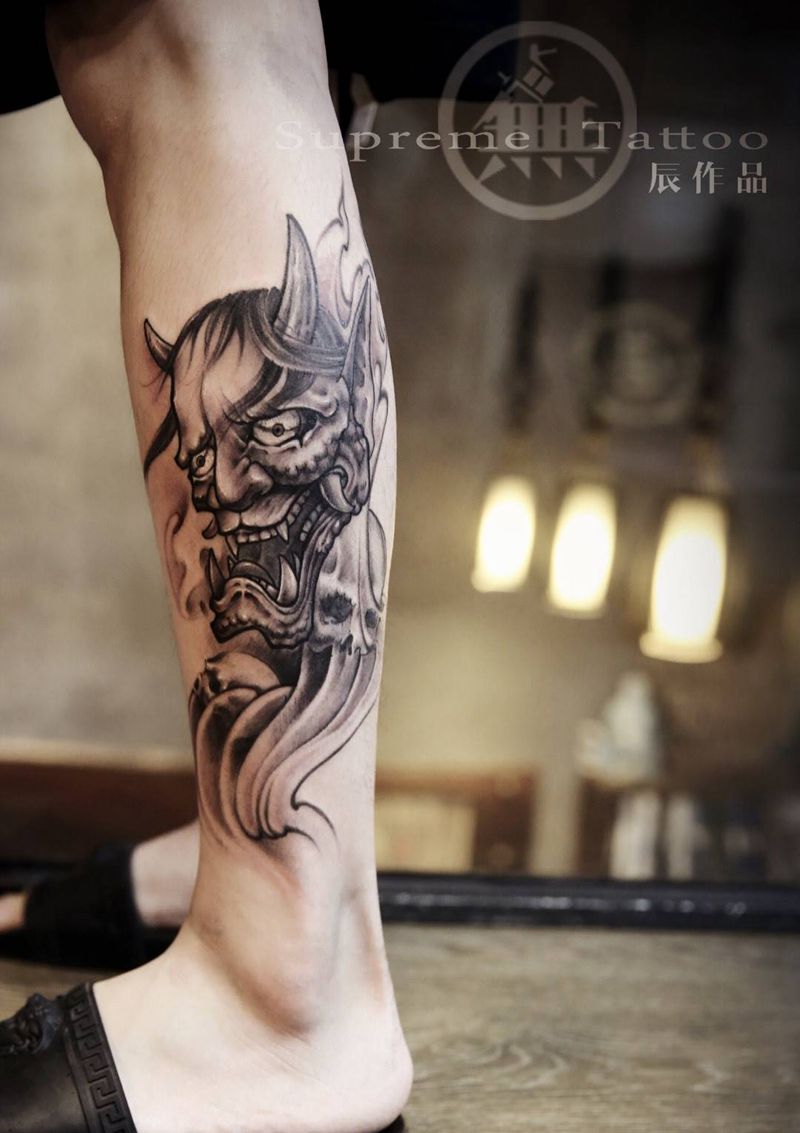 驻店师傅作品纹身图片_人物动物写实腿部成品纹身图案