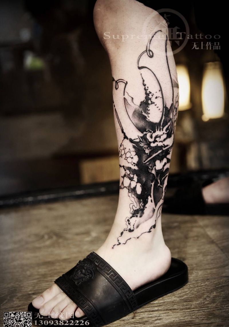 • T网红王老大花腿龙纹身图片_腿部新传统纹身图案