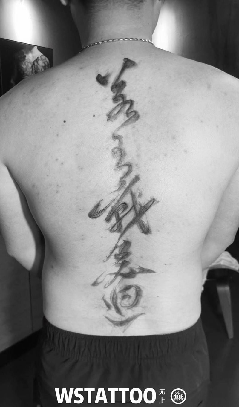 当前位置: 首页 >浙江省台州市纹身店-无上纹图纹身图案>【若有战召必回 】纹身图片_背部水墨纹身图案