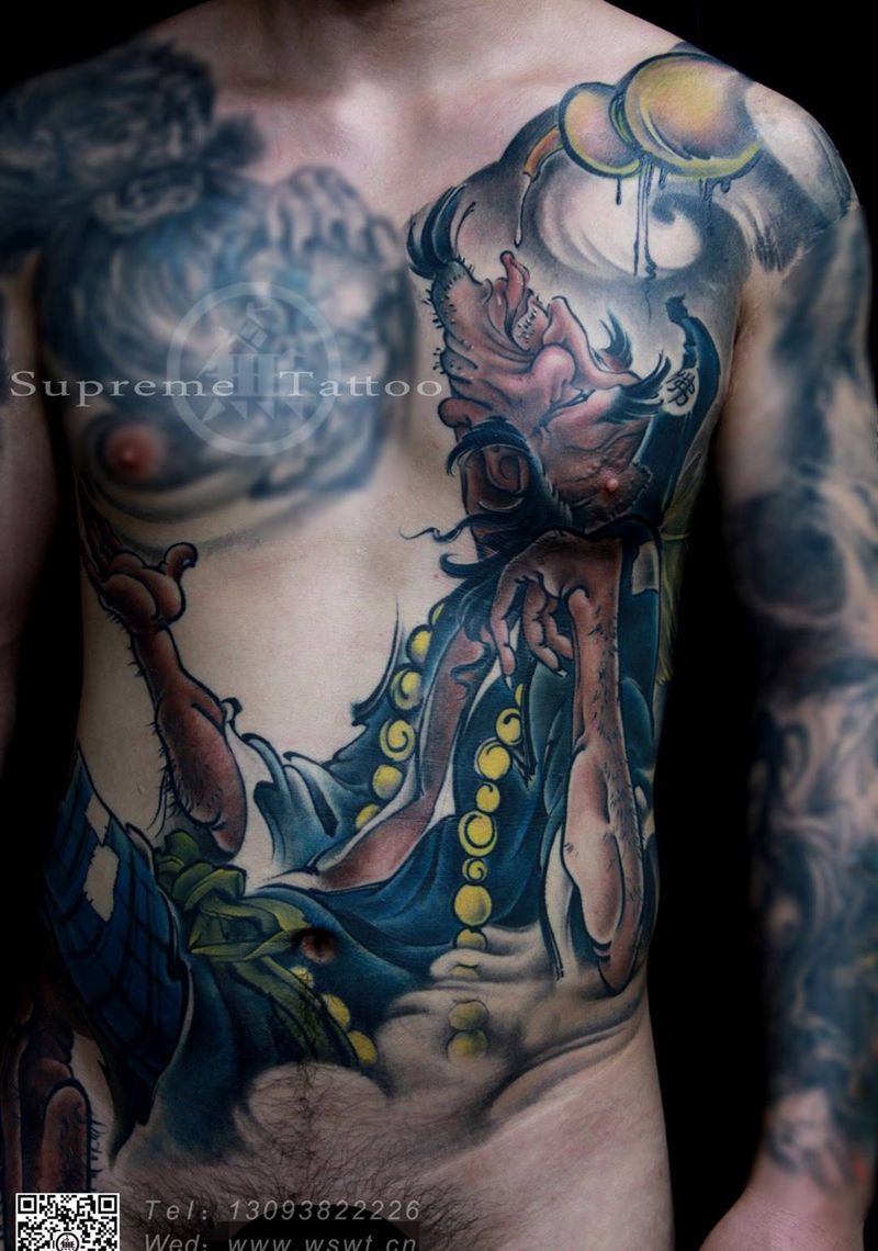 济公纹身图片_传统国画人物原创腹部腰部脚部成品纹身图案