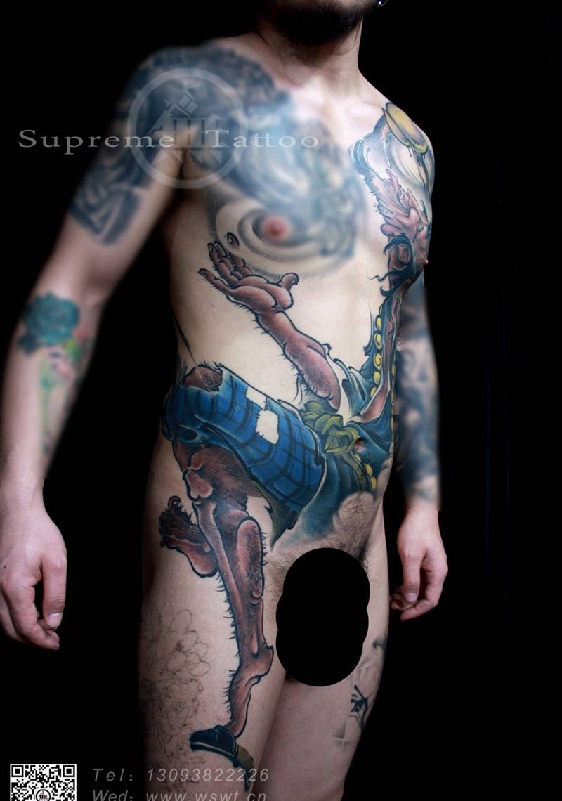 济公纹身图片_传统国画人物原创腹部腰部脚部成品纹身图案