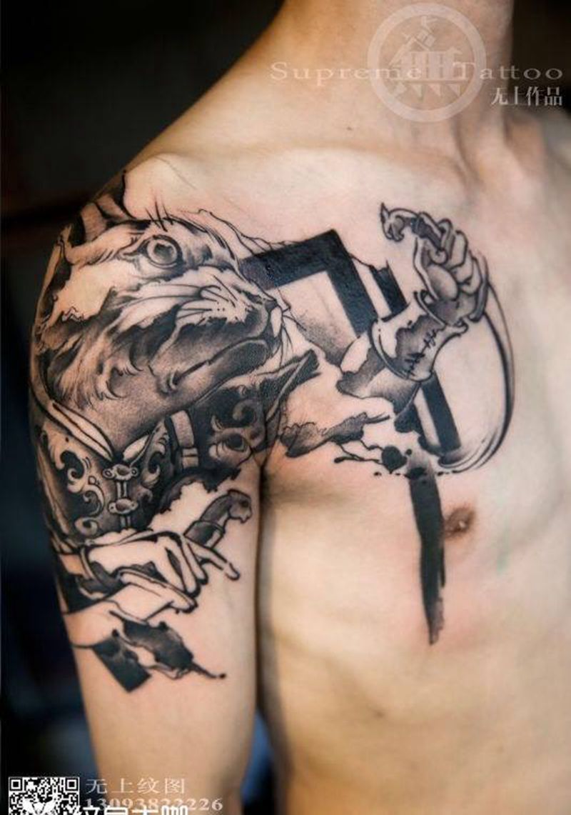 • 纹身吧推荐的披肩图腾半胛纹身图案作品展示