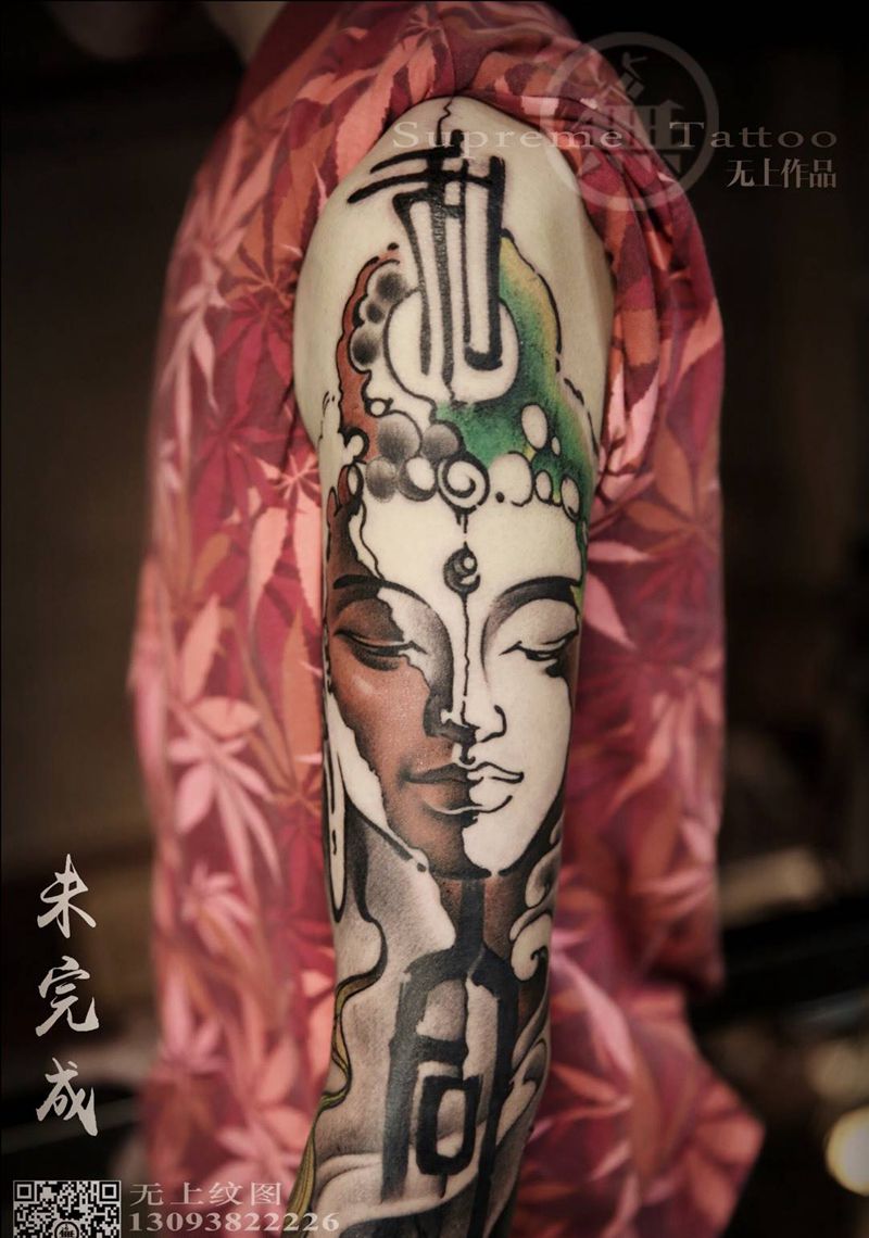 佛像 和 合 同纹身图片_原创人物宗教国画手臂成品纹身图案