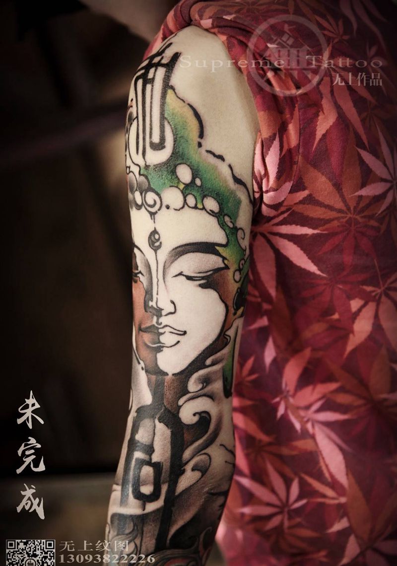 佛像 和 合 同纹身图片_原创人物宗教国画手臂成品纹身图案