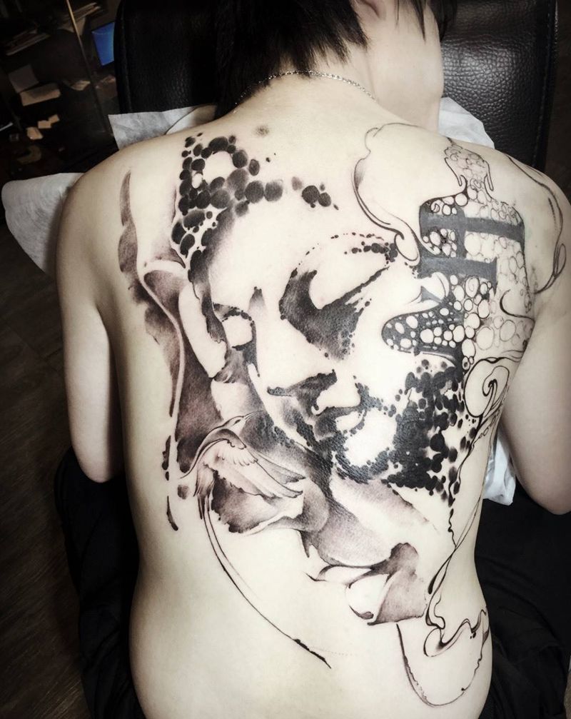 • 纹身吧推荐的披肩图腾半胛纹身图案作品展示