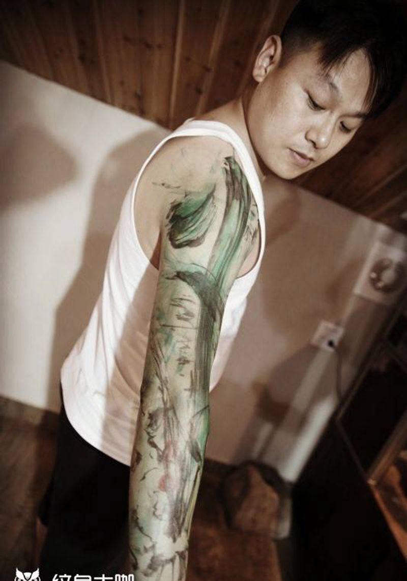 书法泼墨风格——佳纹身图片_成品手臂传统字符原创纹身图案