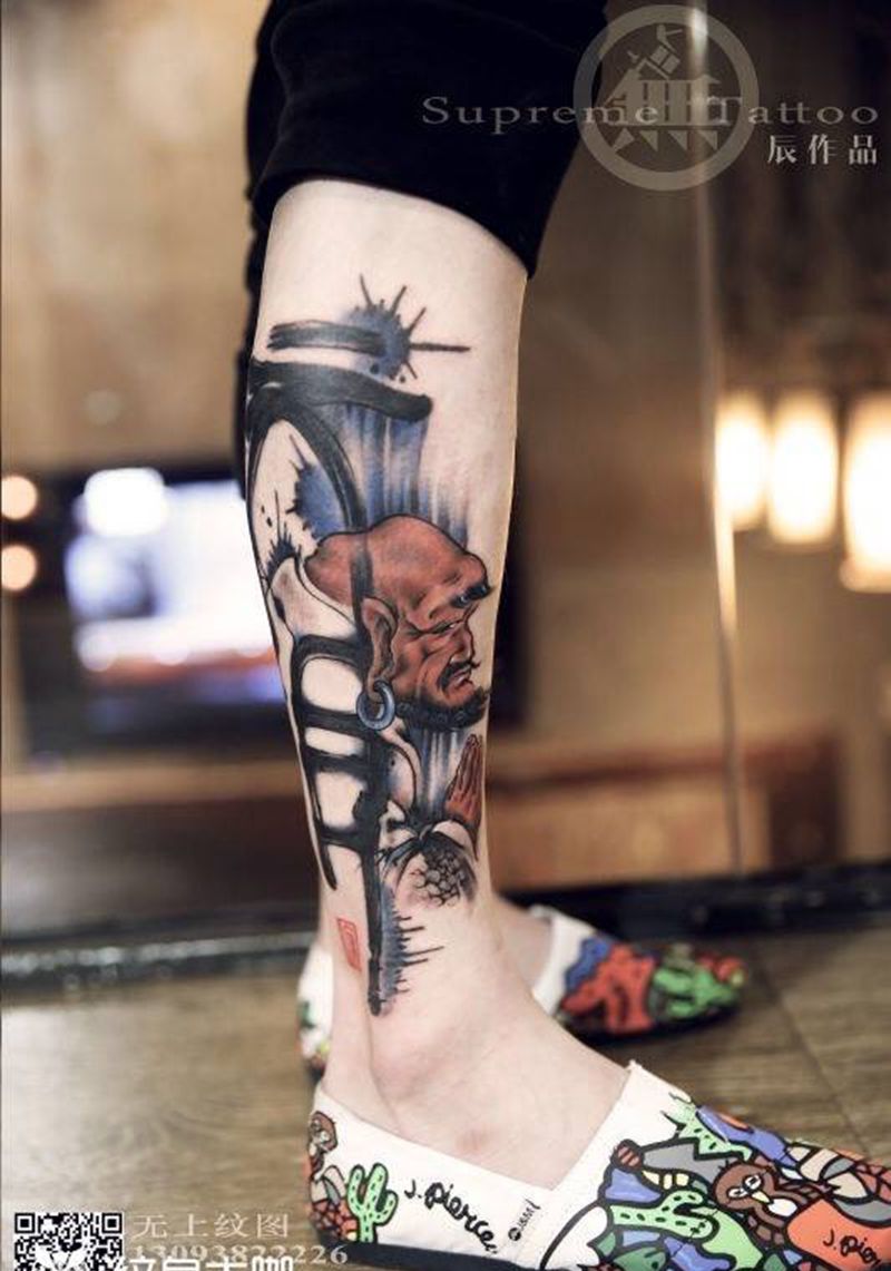 当前位置: 首页 >浙江省台州市纹身店-无上纹图纹身图案>驻店师作品《文道》纹身图片_成品腿部传统肖像原创纹身图案