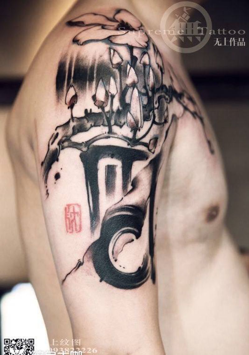 含纹身图片_成品肩部传统字符植物原创纹身图案