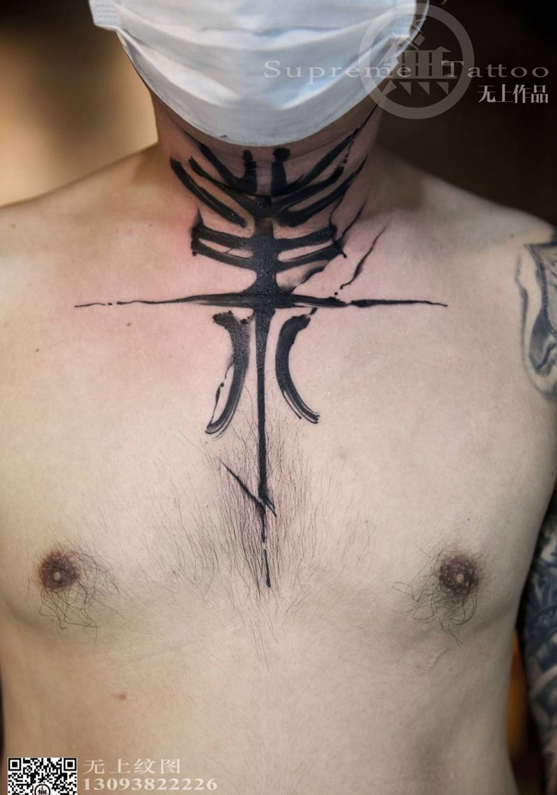 无上书法作品纹身图片_成品颈部传统清新字符原创纹身图案