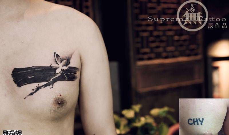 纹身遮盖纹身图片_成品胸部植物图腾遮盖纹身图案