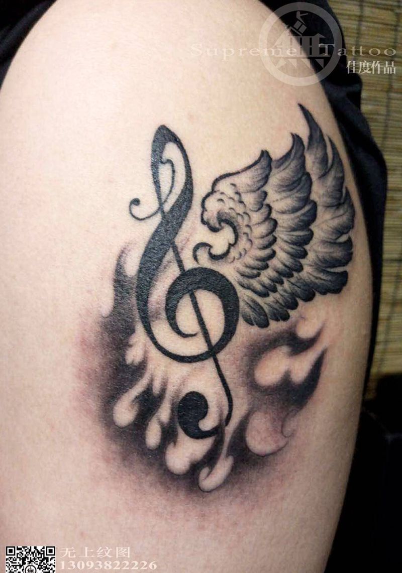当前位置: 首页 >浙江省台州市纹身店-无上纹图纹身图案>音乐翅膀纹身图片_成品手臂清新静物原创字符纹身图案