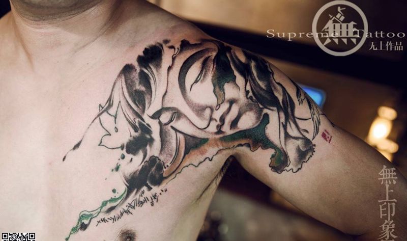无上老师的印象风肖像作品纹身图片_成品手臂胸部欧美清新肖像人物原创纹身图案