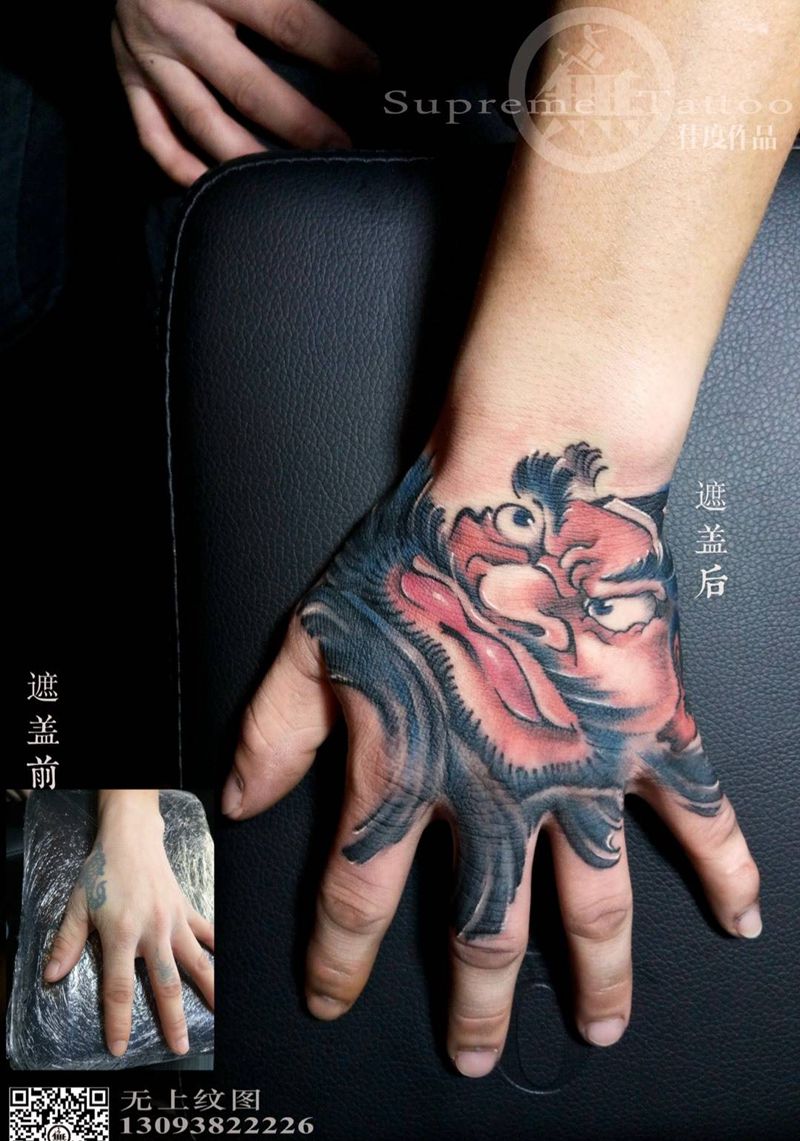 当前位置: 首页 >浙江省台州市纹身店-无上纹图纹身图案>手背钟馗纹身图片_成品手臂传统肖像国画清新人物原创纹身图案
