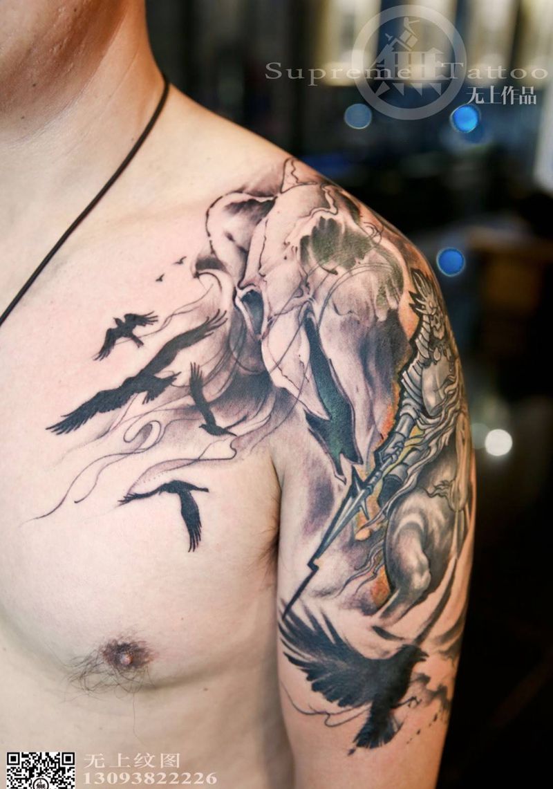• 纹身吧推荐的披肩图腾半胛纹身图案作品展示