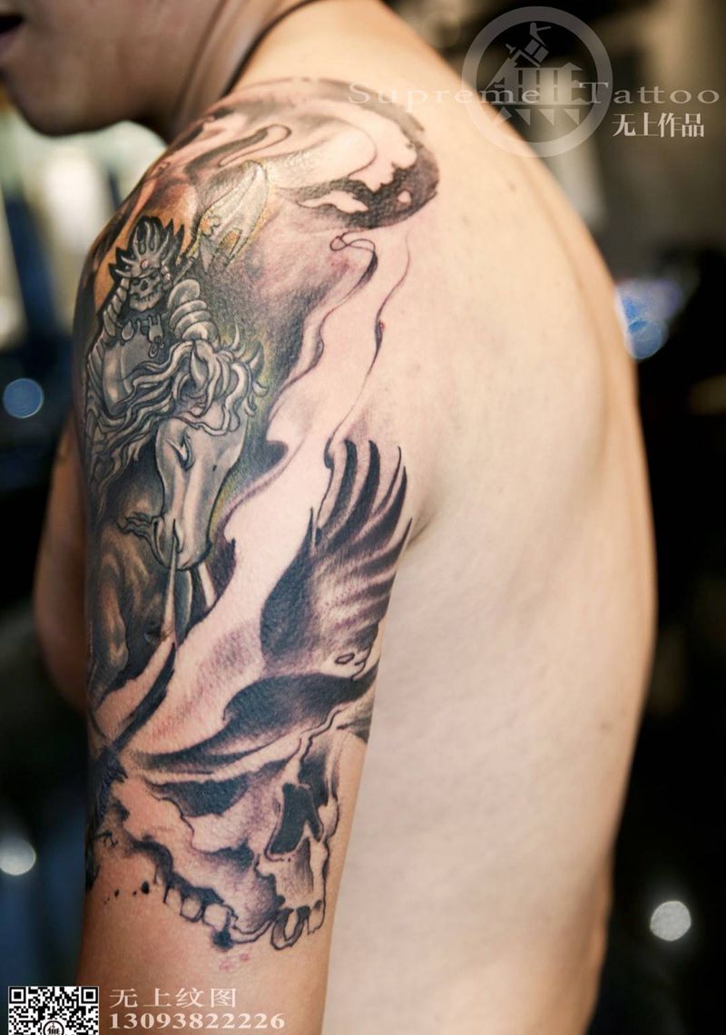 • 纹身吧推荐的披肩图腾半胛纹身图案作品展示
