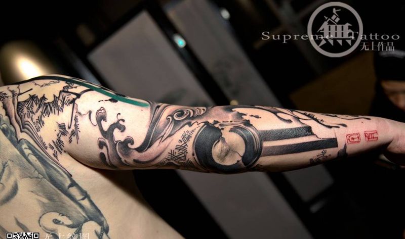 当前位置: 首页 >浙江省台州市纹身店-无上纹图纹身图案>金木水火土纹身图片_成品手臂传统习俗清新原创纹身图案