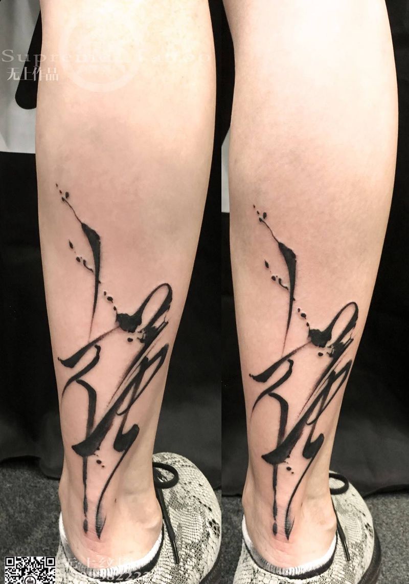 无上老师香港展会作品之4——强纹身图片_成品腿部习俗清新字符原创纹身图案