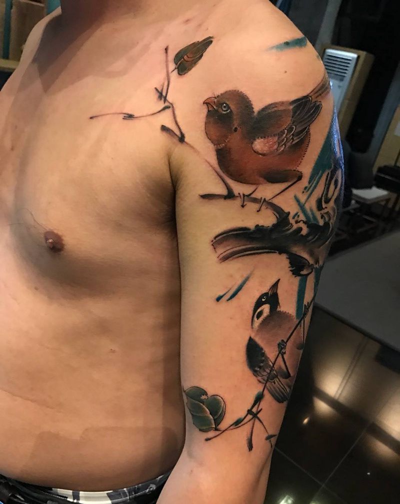 当前位置: 首页 >浙江省台州市纹身店-无上纹图纹身图案>无上中式花鸟风格纹身图片