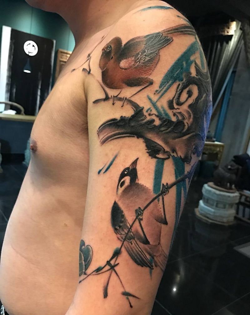 当前位置: 首页 >浙江省台州市纹身店-无上纹图纹身图案>无上中式花鸟风格纹身图片