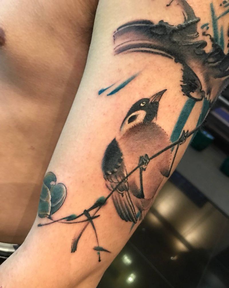 无上中式花鸟风格纹身图片