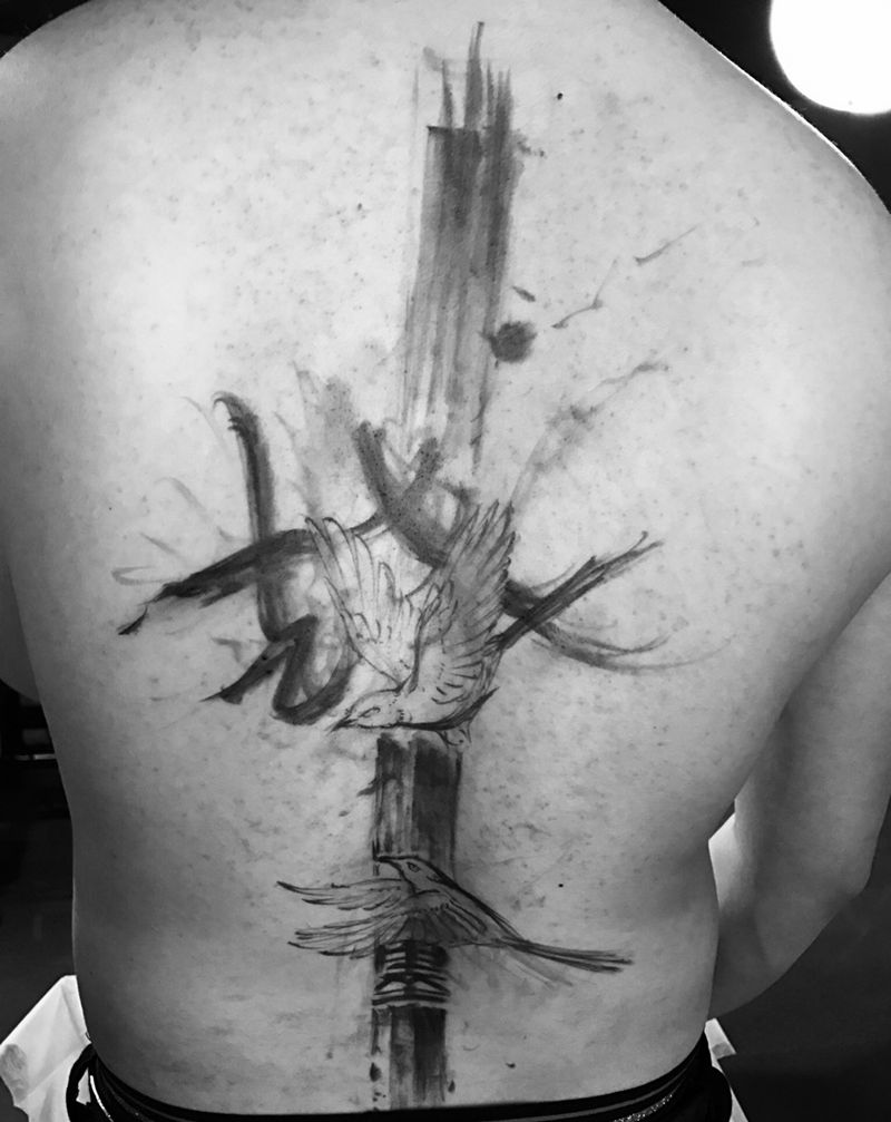 赵·墨纹身图片_成品背部传统清新动物字符原创纹身图案
