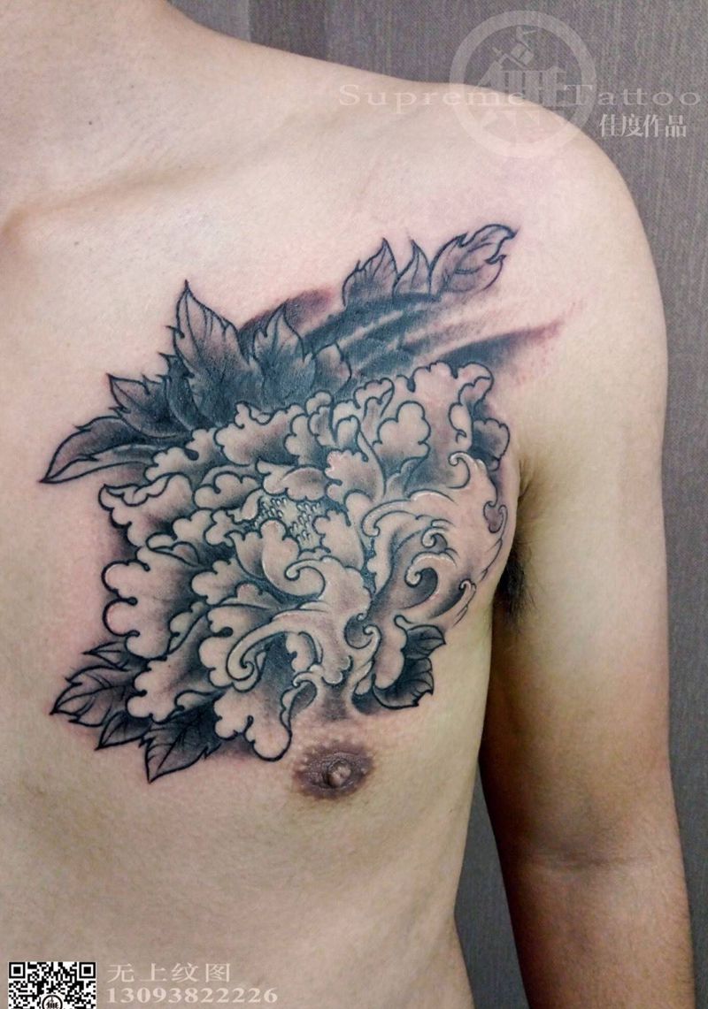 • 女性大花胸纹身_43张霸气漂亮的女性大花胸纹身图案作品