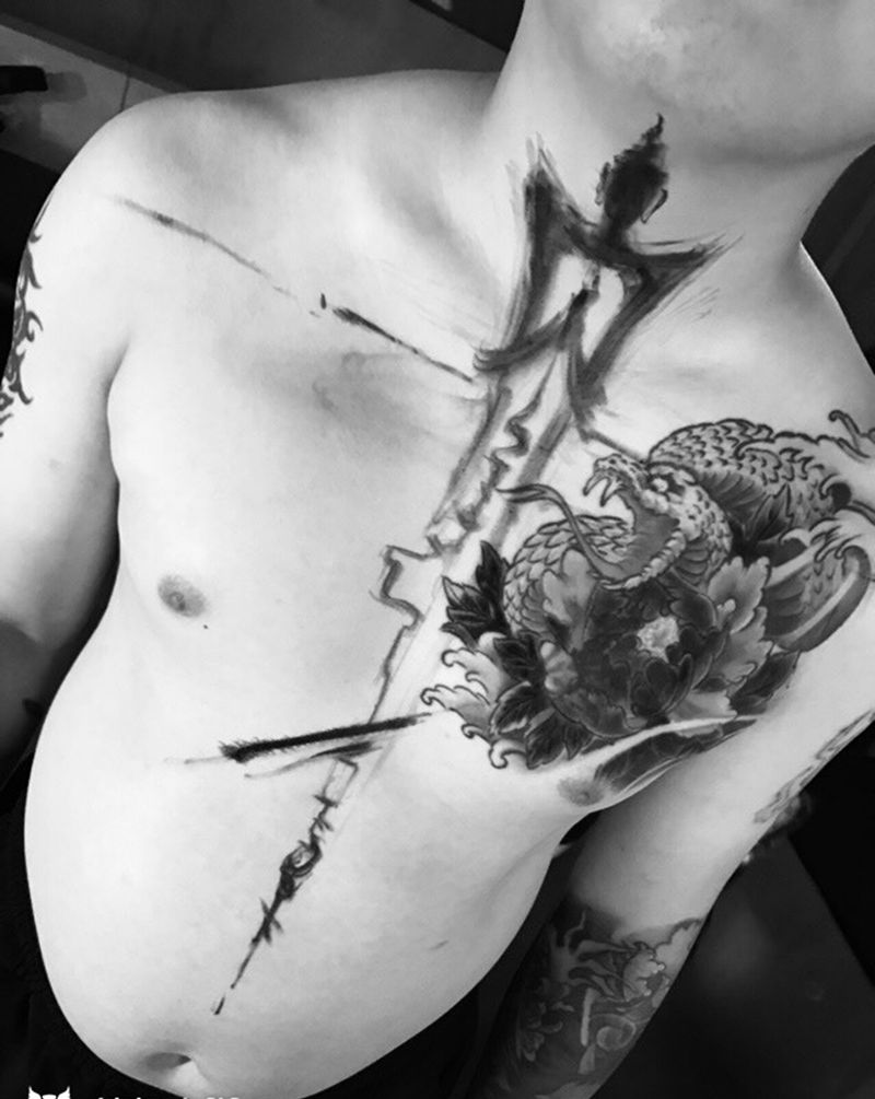 • 男性大花胸_42张优秀的男性大花胸纹身图案图片