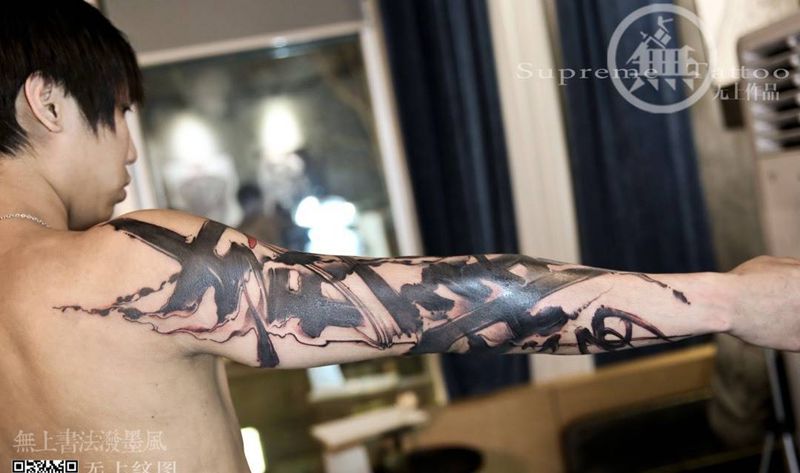 书法花臂《执迷痴妄》纹身图片_成品手臂传统习俗清新字符原创国画纹身图案