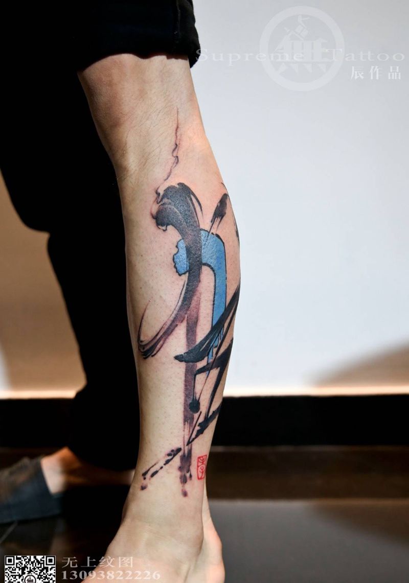 驻店师傅作品纹身图片_成品腿部传统清新国画字符原创纹身图案