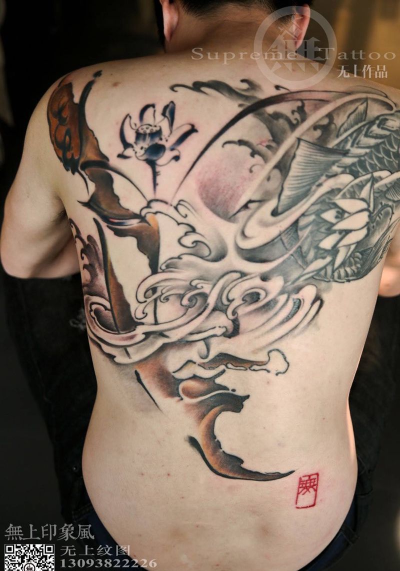 • 黑灰满背纹身图案