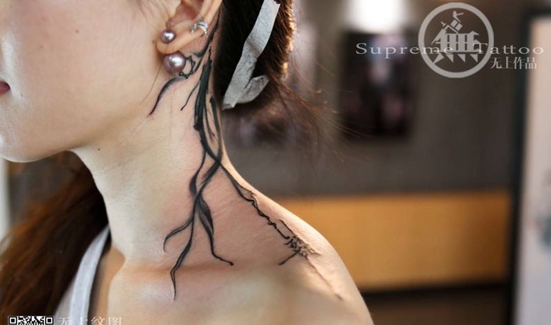 添加修改作品纹身图片_成品颈部传统清新字符几何图腾原创纹身图案