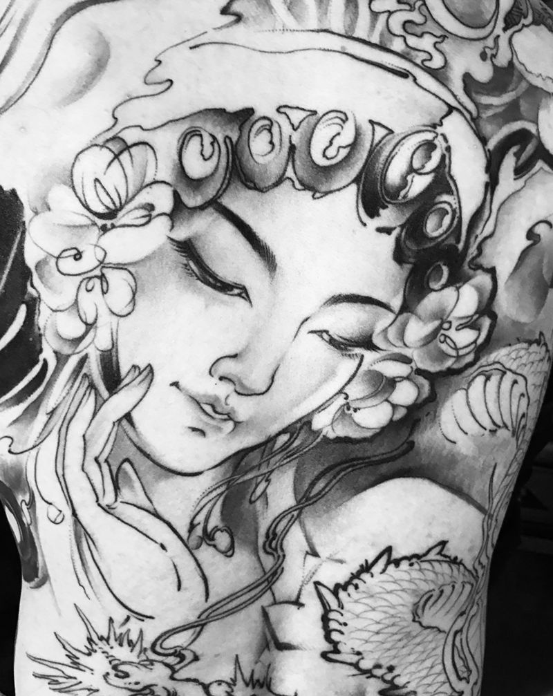 • 女性大花胸纹身_43张霸气漂亮的女性大花胸纹身图案作品