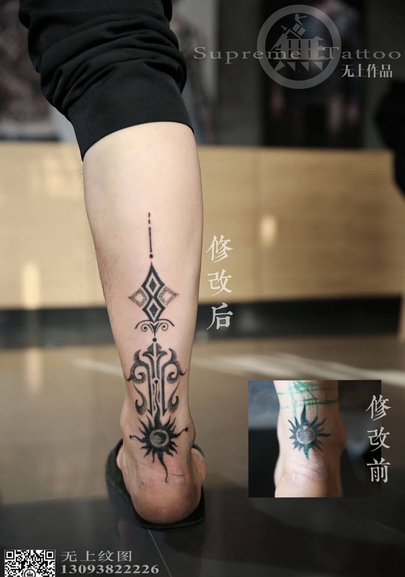 添加修改作品纹身图片_成品腿部欧美清新图腾几何原创纹身图案