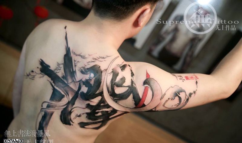 当前位置: 首页 >浙江省台州市纹身店-无上纹图纹身图案>澜纹身图片_成品肩部背部传统清新字符原创纹身图案