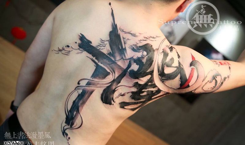 当前位置: 首页 >浙江省台州市纹身店-无上纹图纹身图案>澜纹身图片_成品肩部背部传统清新字符原创纹身图案
