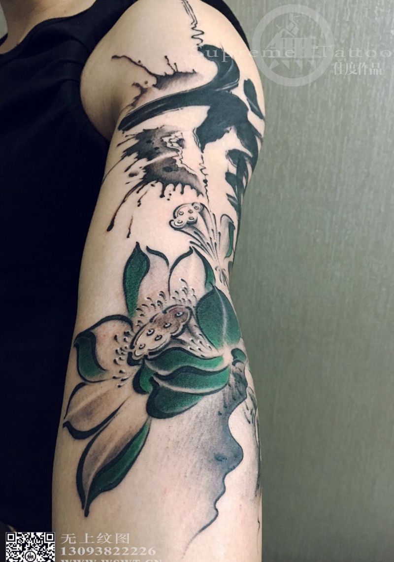 驻店师傅遮盖作品纹身图片_成品手臂传统清新字符植物原创无上纹图生活纹身图案