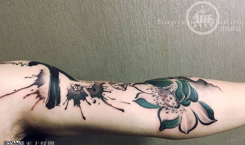 当前位置: 首页 >浙江省台州市纹身店-无上纹图纹身图案>驻店师傅遮盖作品纹身图片_成品手臂传统清新字符植物原创无上纹图生活纹身图案