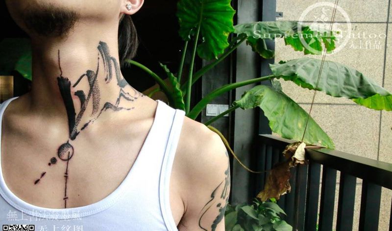 美目盼兮—盼纹身图片_成品颈部传统清新字符原创无上纹图纹身图案