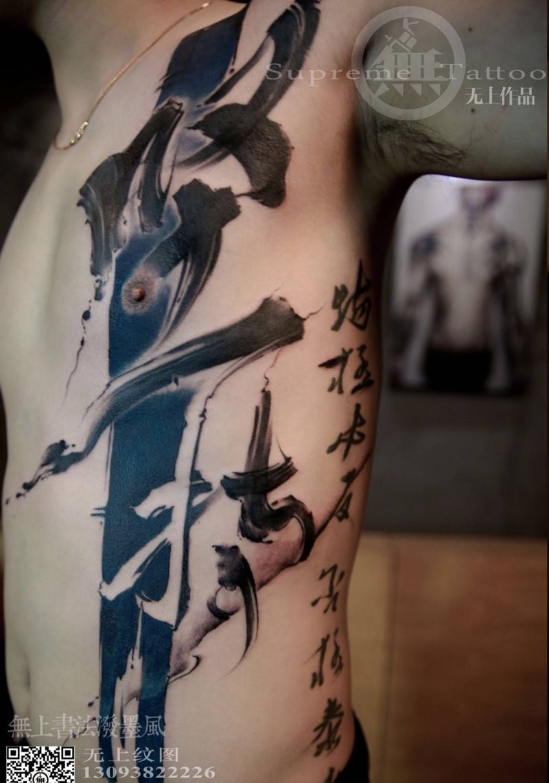 当前位置: 首页 >浙江省台州市纹身店-无上纹图纹身图案>泼墨书法:坚持纹身图片