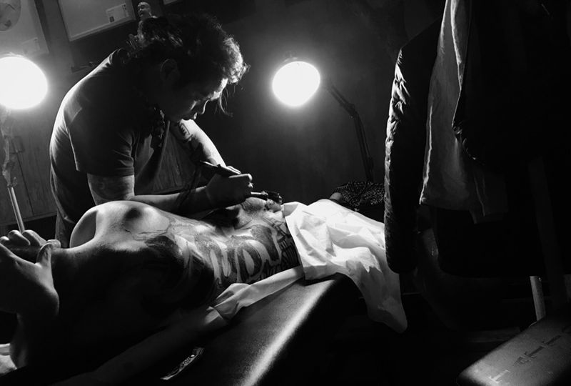 当前位置: 首页 >浙江省台州市纹身店-无上纹图纹身图案>《道德经·全生》纹身图片_成品背部臀部传统习俗国画字符人物原创纹身图案
