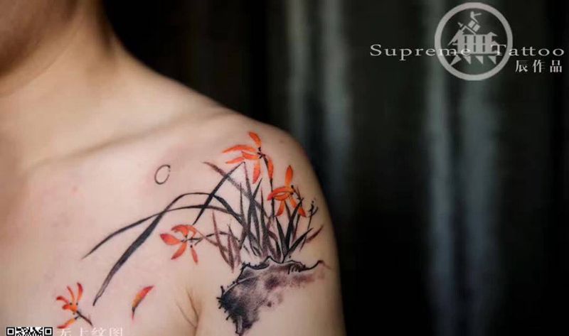 君子兰纹身图片_成品肩部手臂传统清新植物原创无上纹图生活纹身图案