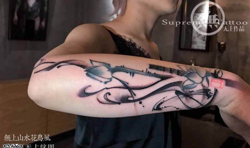 荷花添加修改作品纹身图片_成品手臂清新传统植物原创无上纹图生活图腾纹身图案