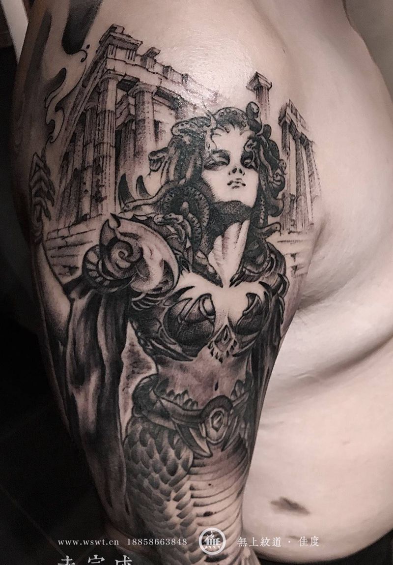 美杜莎纹身图片_成品手臂欧美肖像鬼神无上纹图招生纹身图案
